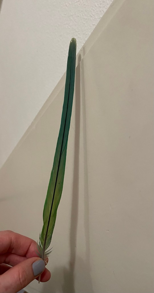 was habe ich da schönes zwischen den Jahren in Köln gefunden? Richtig eine Halsband-Sittich-Feder. Knaller, oder? Definitiv mein Krafttier für 2023. Und so beschwingt war es auch gleich gestern mit unserem Yoga-Auftakt.
